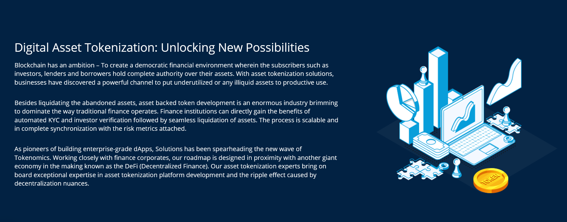 For over 5 years, we have built a vast portfolio of asset backed security token across tangible (patents, equity shares etc.), fungible (Gold, Silver etc.), non-fungible (Real Estate, Art pieces etc.) categories. Offering an overarching frictionless experience over Blockchain, the digital asset tokenization platform produces an intuitive experience for the investor with Automated Dividends, Holdings in another fund, Buyback rights and incentivizing.