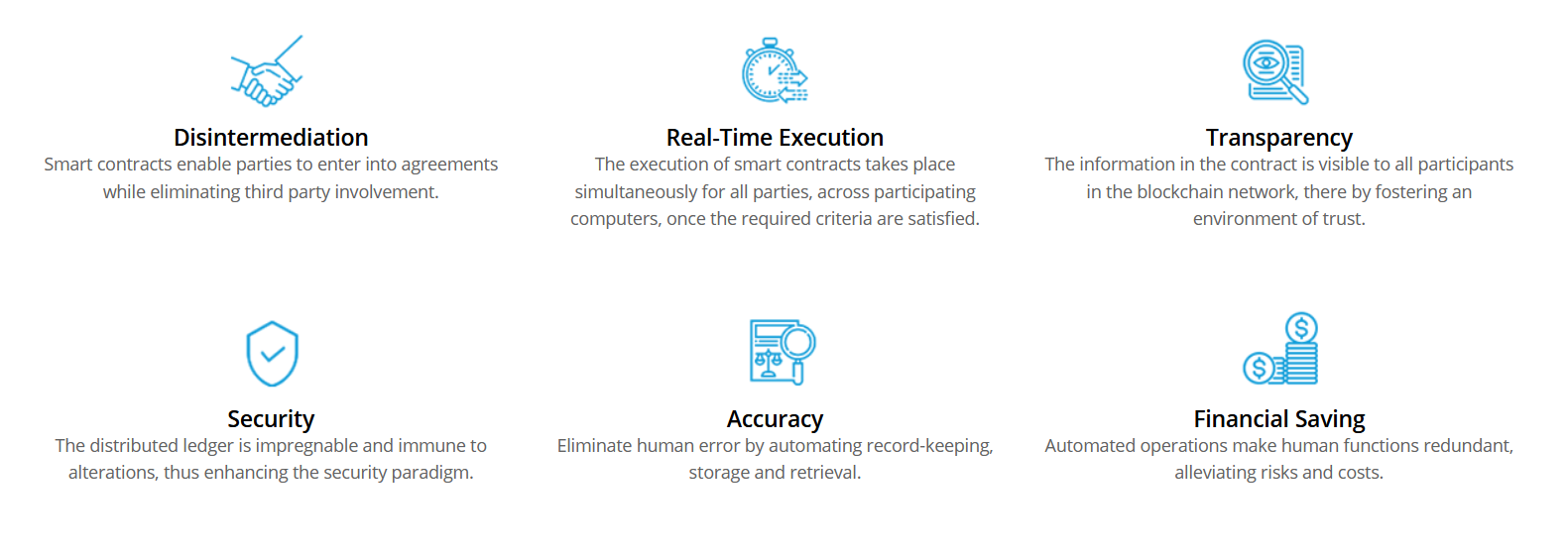 Enterprises, regardless of size or industry, are supported by written contracts. However, these are often burdensome and cause business and legal conflict. A solution can be replacing traditional with smart contracts. A smart contract is an agreement, in the form of a computer program that executes automatically when the pre-programmed conditions are satisfied. The goal of a smart contract is to simplify trade and business between both identified and anonymous parties. A smart contract hard-codes trust into the system and eliminates the need for counterparties to execute their part of the agreement. It can help streamline transactions, reduce duplication and alleviate the costs.